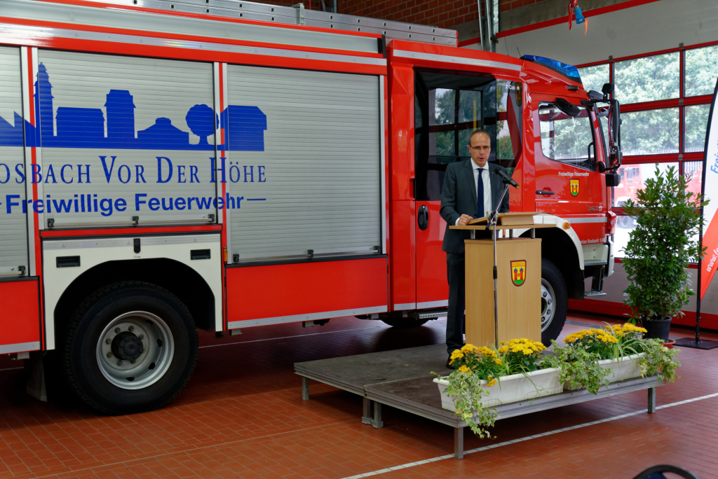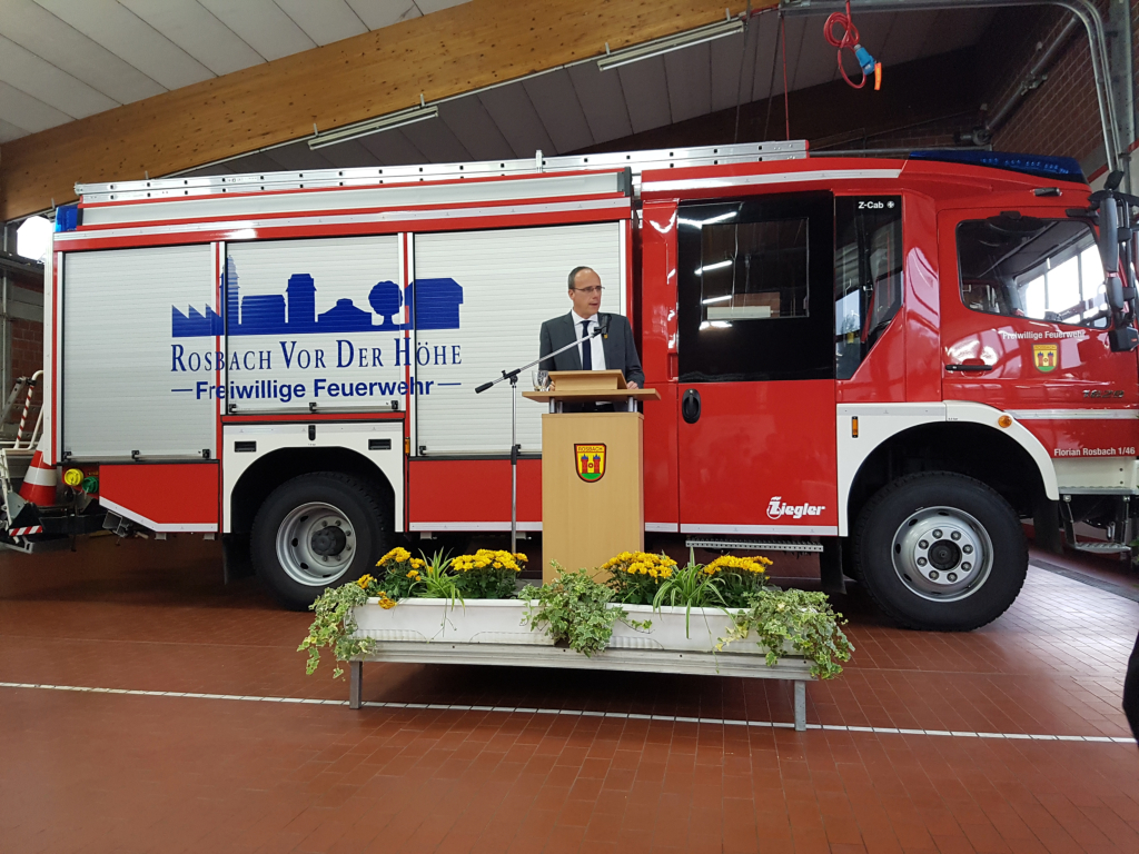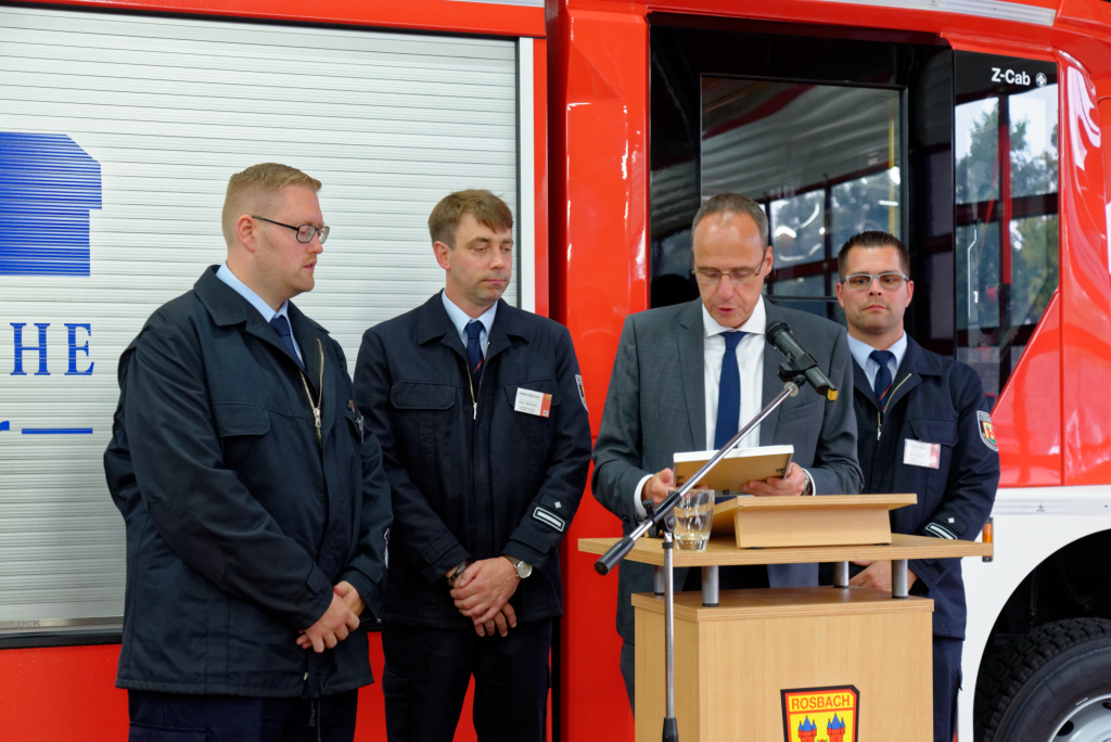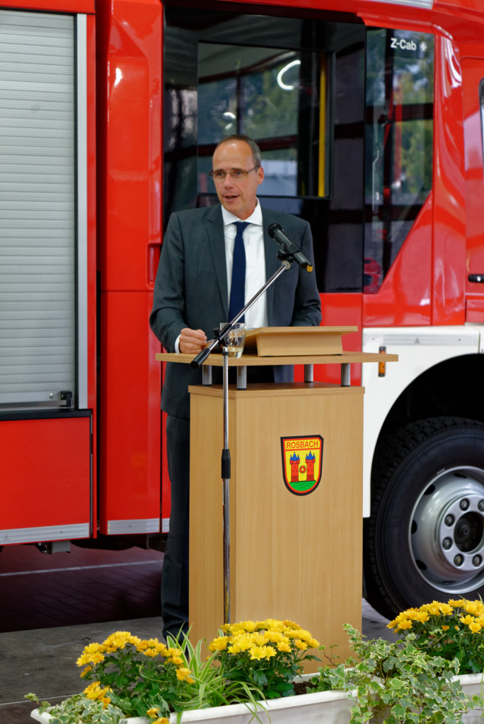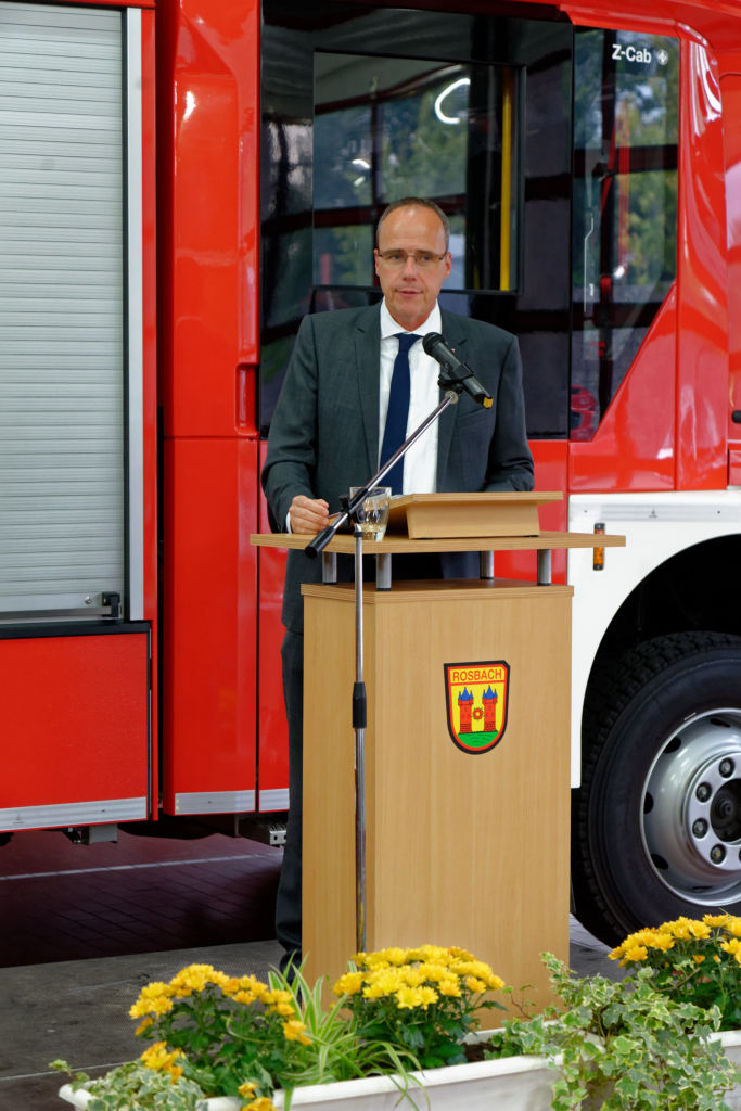 „Dieses Engagement der Freiwilligen Feuerwehr Rosbach ist beispielgebend für ganz Hessen. Daher zeichne ich die Kameradinnen und Kameraden der Wehr als ‚Feuerwehr des Monats Juli‘ aus“, so Innenminister Peter Beuth bei seiner anschließenden Rede zur Auszeichnung.