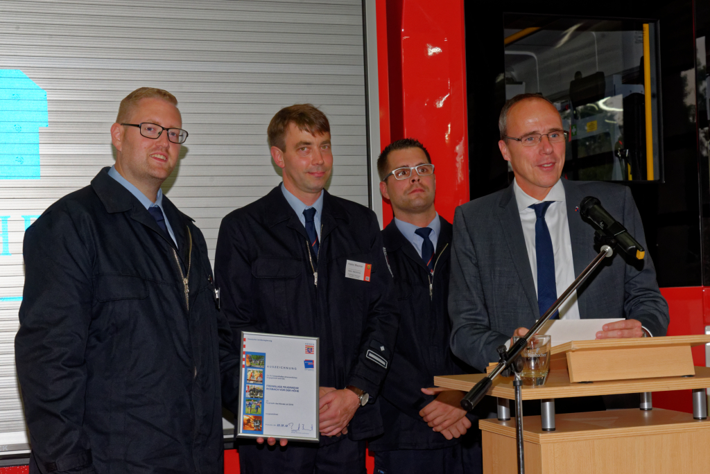 In den anschließenden Grußworten der Gäste wurden die Glückwünsche zur Auszeichnung überbracht und die besondere Bedeutung des Systems der Freiwilligen Feuerwehren noch einmal betont.